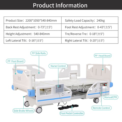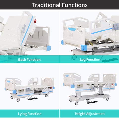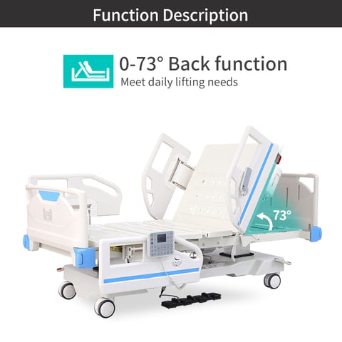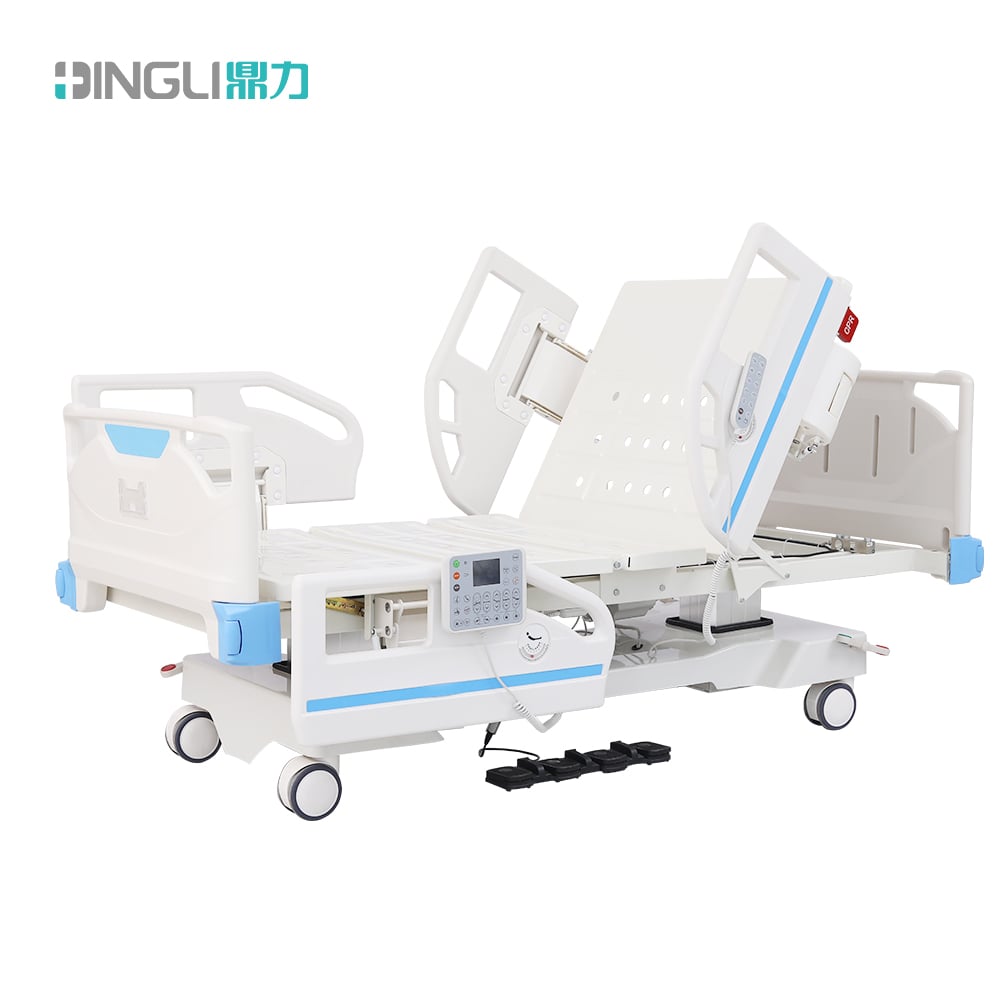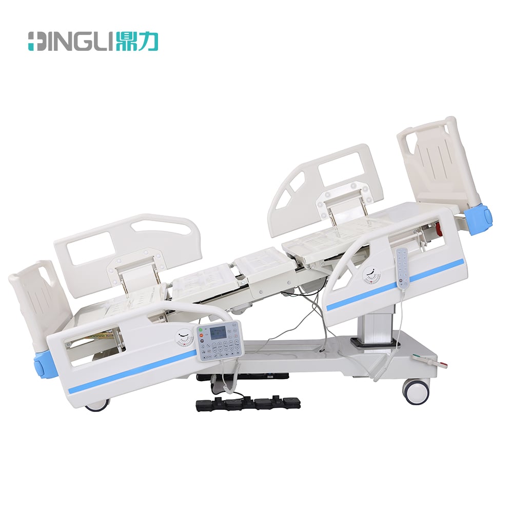 Introducing our DingLi electric two-column eight function ICU bed DL-EFF-09, designed with user comfort and convenience in mind. This versatile bed offers eight adjustable functions, including height, backrest, legrest, trendelenburg and reverse trendelenburg, keeping users in optimal positions for their recovery. The bed is suitable for ICU patients and those in need of extra care. Its smooth, low-noise electric motors make adjustments effortless, and its sturdy construction ensures safety and stability. With an ergonomically designed hand control and easy-to-use features, this bed takes patient care to the next level. Invest in the comfort and well-being of your patients with our top-of-the-line ICU electric bed.