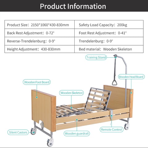 Slat Beech Bed Platform+Wooden Bed End +Wooden Side Rail+ Single Caster + Remote Control Training Stand