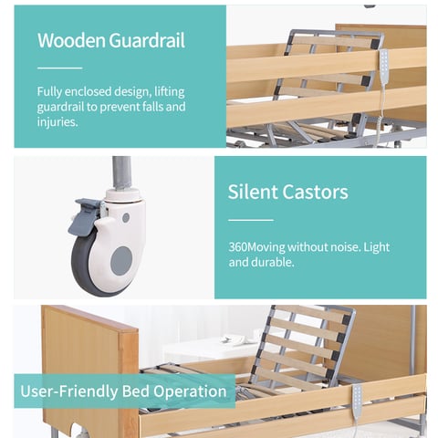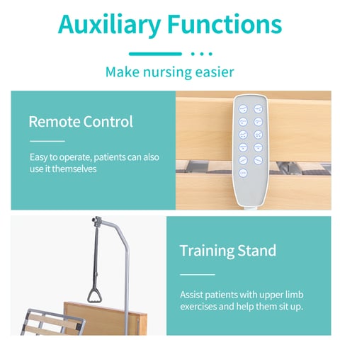 Introducing our DingLi homecare bed - the ultimate five function electric bed that meets all your medical needs. Equipped with five different functions, this bed provides maximum comfort and convenience to users. It's perfect for individuals with mobility issues or those who require medical attention at home. Whether you need to elevate your head or feet, adjust the height, or incline the bed, the DingLi homecare bed can do it all with just a push of a button. Its ergonomic design offers exceptional support and comfort, allowing you to rest and recuperate in peace. With its robust construction, this bed is sturdy, safe, and durable. The perfect solution for both home and hospital use. Invest in the five functional electric bed today and take the first step towards a healthier, happier life.