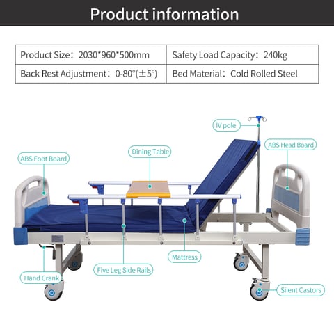 The DingLi manual one crank hospital bed (DL-DY-12) is a perfect solution for patients in need of adjustable and comfortable care. Its features include an easy-to-use crank system that elevates the headrest for customized comfort, a sturdy and reliable design with a weight capacity of up to 250 kilograms, and a sleek, modern appearance that complements any hospital or care facility. This hospital bed is ideal for patients in recovery, seniors, and those with mobility issues who require special care. Its advantages include high-quality materials, durability, and ease of use, making it an excellent investment for all medical care settings. With the DingLi manual one crank hospital bed, your patients will receive superior care and comfort, enabling them to heal faster and more effectively.