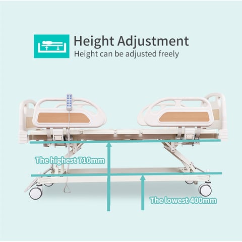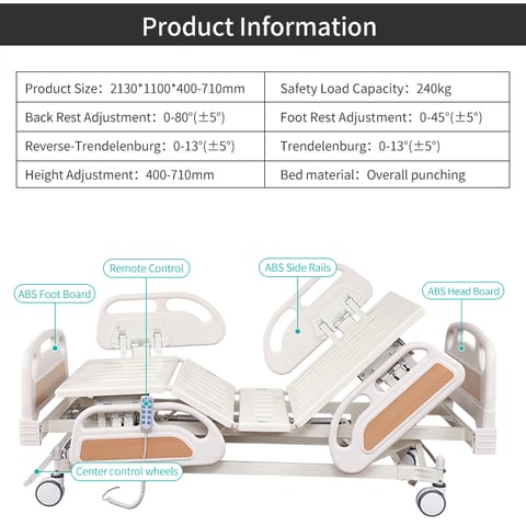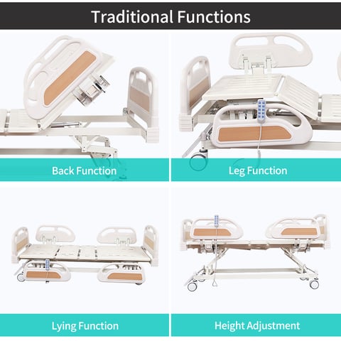 Five functions: backrest, footrest, height adjustment, trendelenburg, and reverse trendelenburg