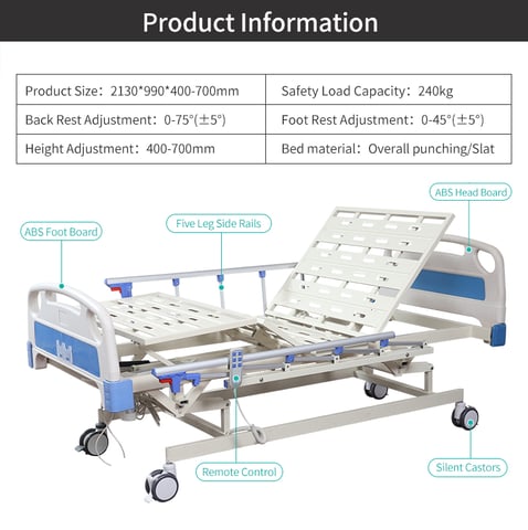 Three Function Electric Hospital Equipment - The hospital bed comes with three functions for convenience, making it highly versatile and suitable for a variety of patients.