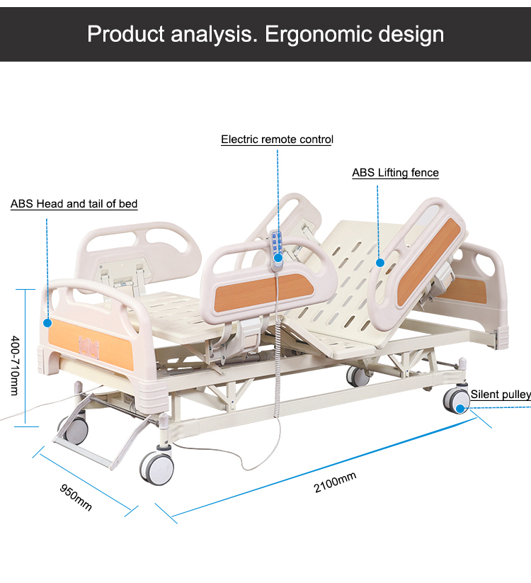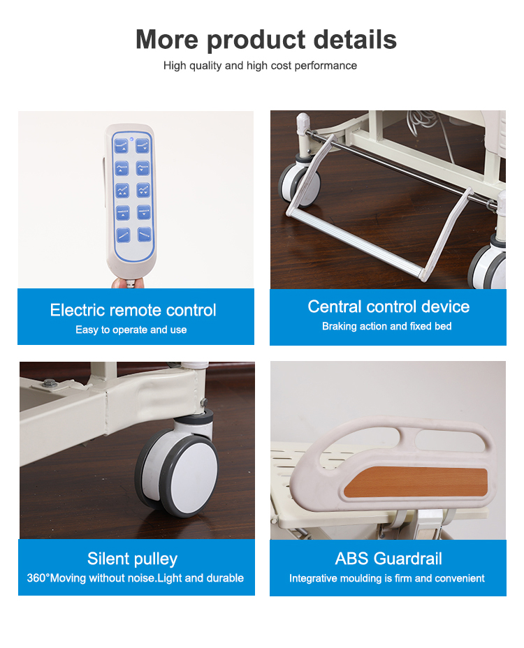 Bed+ABS side rail+ ABS head board and foot board+center control wheels